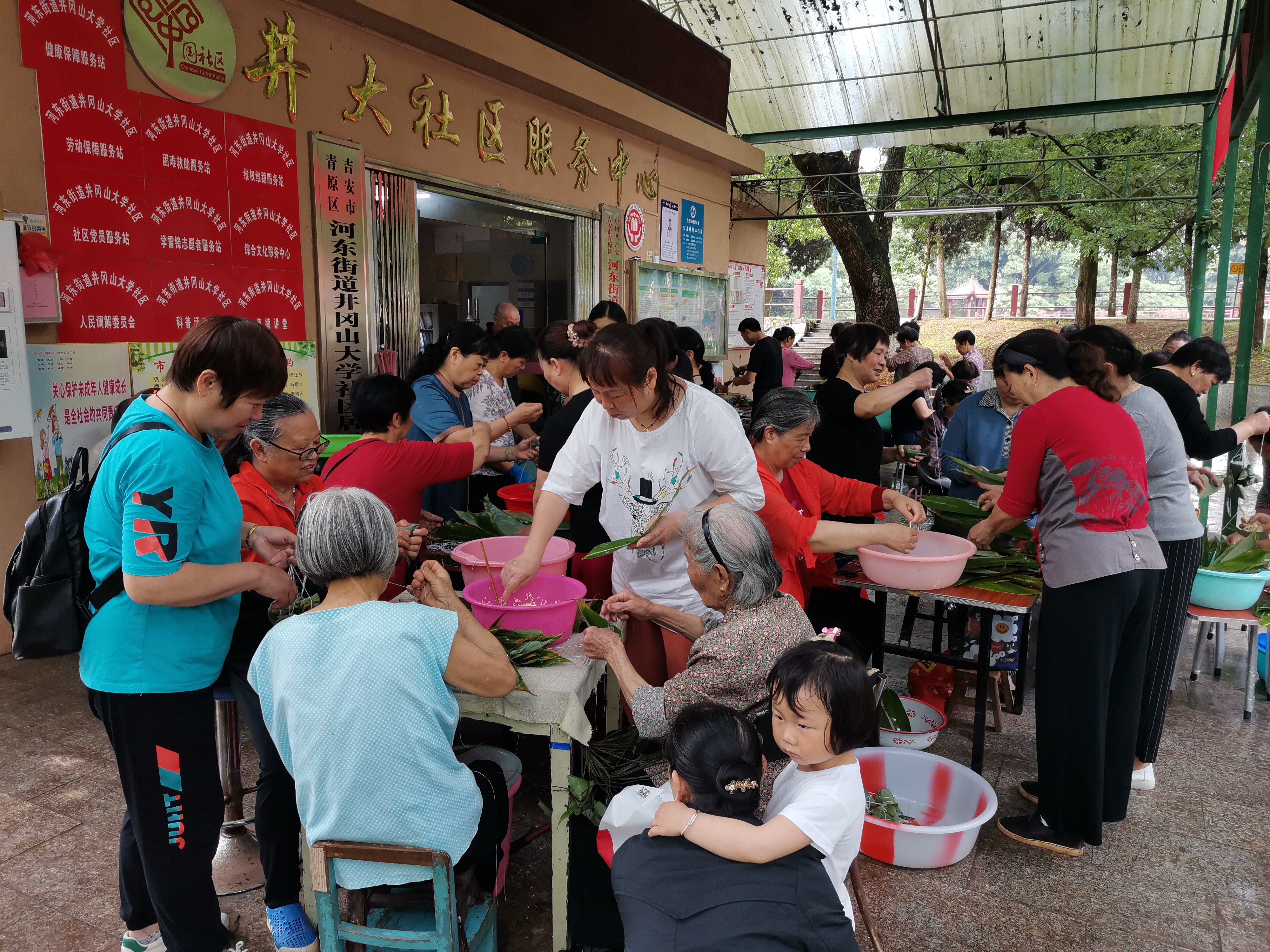 在端午佳节临近之际,为传承传统文化习俗,让辖区居民感受欢乐祥和的节日氛围,6月1日,井大社区在便民服务中心开展了“我们的节日一—粽子甜香,社区情长”文明实践主题活动,来自辖区内的50多名居民参与包粽子活动。