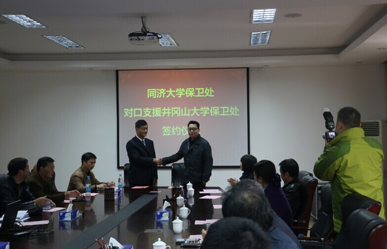 同济大学保卫处、井冈山大学保卫处于11月26日,在井冈山大学举行了对口支援签约仪式,肖长春副校长出席并作重要讲话,同济大学保卫处副处长胡少卿一行8人、井冈山大学保卫处副科以上干部参加了签约仪式。