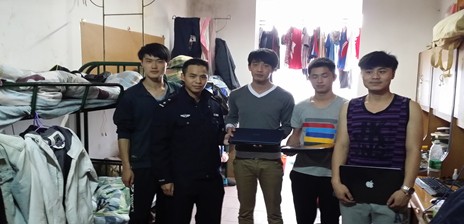 2014年3月5日下午4时许,某学生宿舍发生一起入室盗窃案,3台笔记本电脑和一台苹果平板电脑被盗,价值约1.5万元。校保卫处接警后,第一时间赶赴并保护好现场,同时迅速联系当地公安刑侦大队,通过现场勘察、走访,调取校保卫处提供的多处视频监控影像,最终锁定了犯罪嫌疑人刘某,并于3月9日成功将犯罪嫌疑人刘某抓获,在大量的证据下犯罪嫌疑人刘某对此次攀爬学生宿舍盗窃电脑案的犯罪事实供认不讳。为尽快追回失物,挽回学生损失,保卫处指派专人密切与公安联系,校地联手,争分夺秒,成功将犯罪嫌疑人刘某已销赃的4台电脑全部追回,并完好无损的归还给被盗学生。