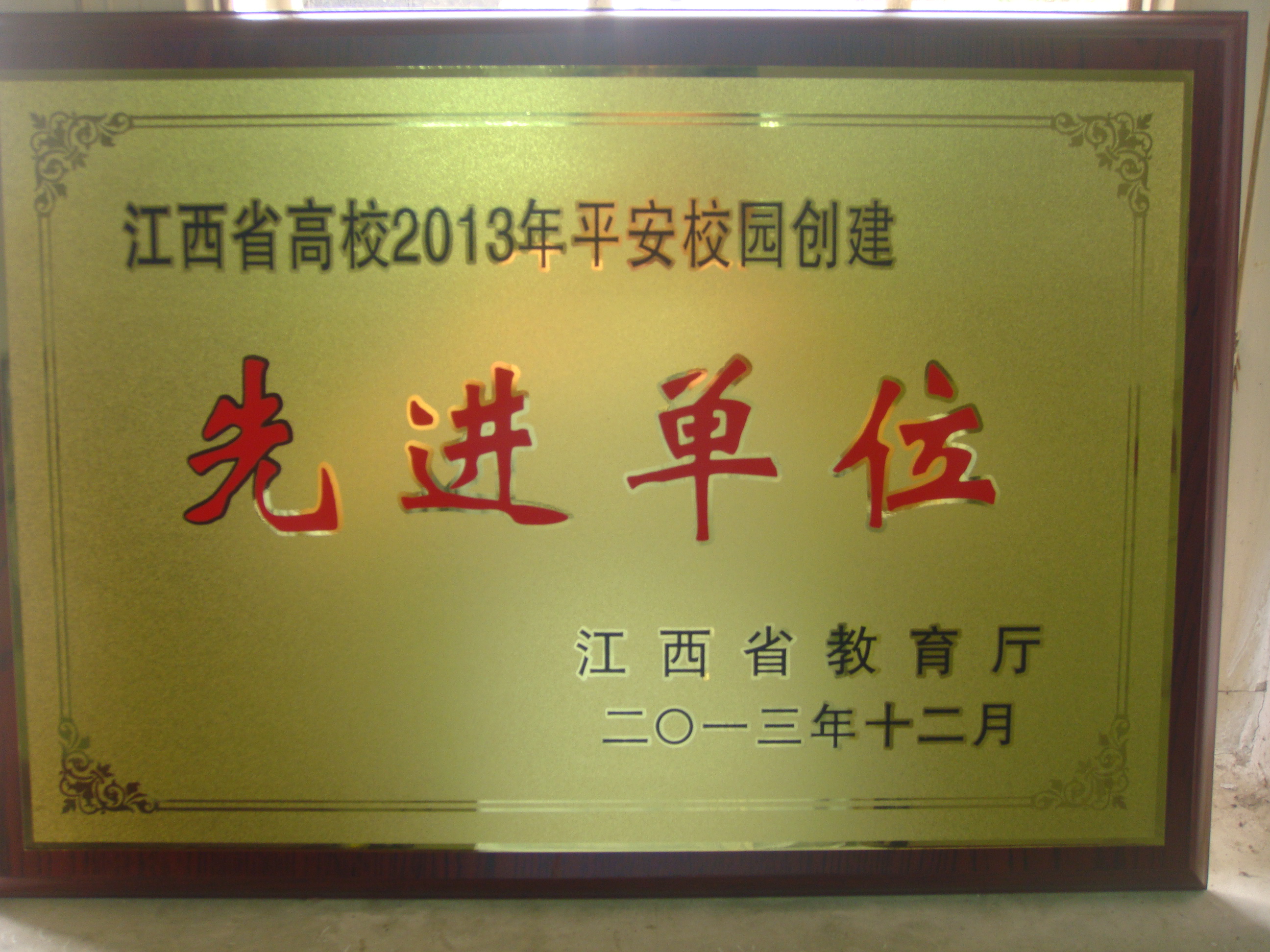 根据省教育厅赣教稳定字【2014】4号《关于表彰全省高校2013年平安校园创建先进单位的决定》,我校荣获江西省高校2013年平安校园建设先进单位。
