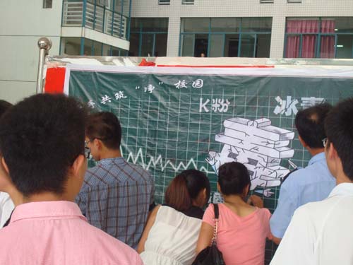 同学们充分了解毒品危害后,纷纷在承诺不接触毒品、远离毒品的宣传横幅上郑重地签下自己的名字。