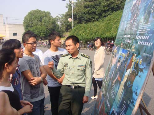 在活动中,市军分区参谋长程小云向前来咨询的同学们解答了部队对大学生应征入伍的相关优惠政策;校党委副书记、纪委书记金桂英也对前来咨询的同学们解答了在校大学生应征入伍上给予学籍上面的优惠政策,并鼓励同学们踊跃报名应征入伍。