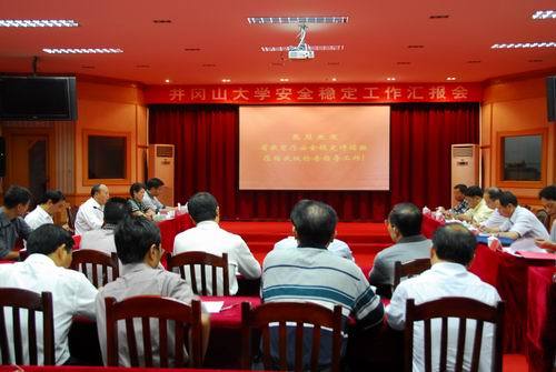 肖长春从领导重视,组织保障到位;健全制度,落实安全防范措施;加强安全教育,积极开展岗位学习培训;主动预防,建立健全各种维稳机制;创新管理模式,促进学校和谐发展等5个方面汇报了我校在安全稳定工作中的措施和成效。肖长春还着重汇报了我校安全稳定工作的特色工作。他说,学校坚持以井冈山精神办学育人,夯实师生建设和谐校园基础;学校安全稳定工作重心下移,服务靠前,建立了师生住宿区域治安室,建立了学生宿舍学管干部工作室,建立了专职保卫干部挂点联系学院制度;学校推进了校园巡逻常态化建设,提高学生自我管理能力,发挥学生自我服务作用。