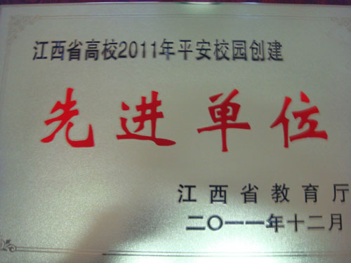 我校荣获"江西省高校2011年平安校园创建先进单位"称号。