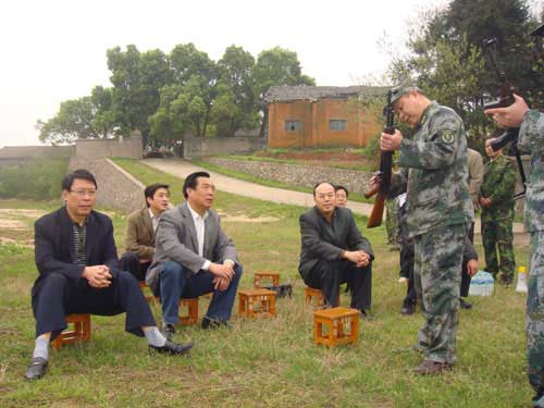 为增进军地共建,强化国防意识。3月23日在家部分校领导万继抗、郭名根、罗学渭、王伴青、校长助理黄翔峰等,在校武装部部长廖万民陪同下,走访了吉安军分区训练基地。受到正在训练的青原区武装部领导及全体官兵的热烈欢迎。青原区武装部长袁忠发表了热情洋溢的讲话,并介绍了有关国防和军备建设的情况。校领导应邀进行了实弹射击。