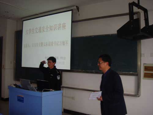 4月 22日下午,由保卫处、校团委、学生会联合举办的大学生交通安全知识讲座在第九教学楼409室举行。我校举办大学生交通安全知识讲座