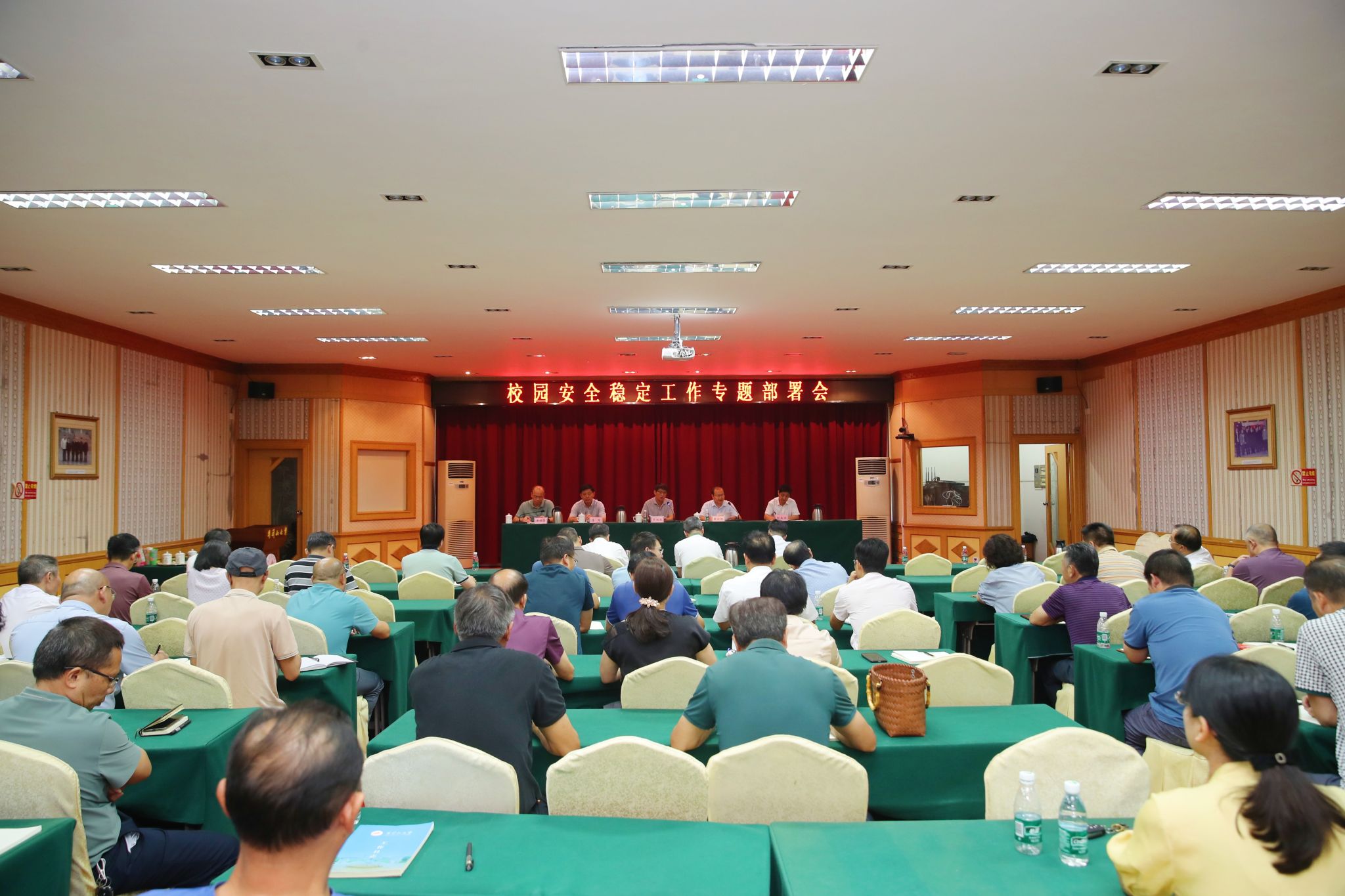 为迎接新中国成立75周年,进一步做好国庆假期期间校园安全稳定工作,以强烈的政治担当和过硬的工作作风,严防发生校园安全事故,9月29日,学校召开了校园安全稳定工作专题部署会议,校党委副书记、校长罗旭彪出席会议并讲话,党委常委、副校长黄俭根主持了会议,在家的校领导李军、冷明、彭西洪、黄族豪、肖洪海、刘梁军等常委班子成员出席,各部门、学院(部)主要负责人等80余人参加会议。