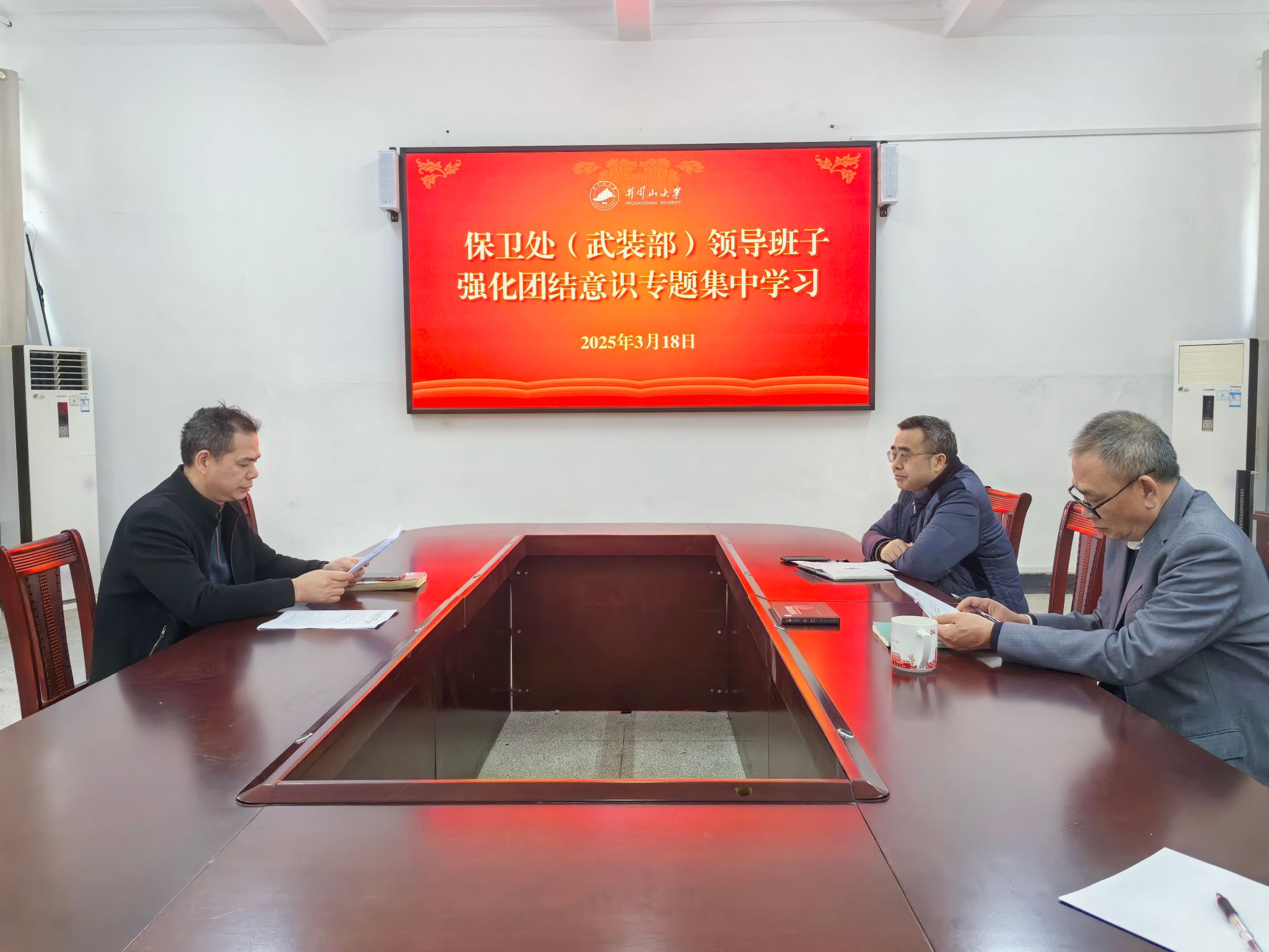 黄赣生指出,要深刻领会团结意识的重要性,筑牢思想根基,严格落实民主集中制,提升决策科学性,要加强自身建设,发挥榜样作用,以团结协作推动安全保卫工作落实,助力学校申博攻坚。